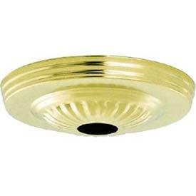 The Satco 90-192 Brass Finish Ribbed Canopy Kit serves as a decorative and functional cover for the electrical wiring connections at the ceiling or wall outlet box. It provides a finished appearance to your lighting fixture installation while safely enclosing the electrical components. The 1-1/16" center hole accommodates the stem or chain of most standard lighting fixtures.